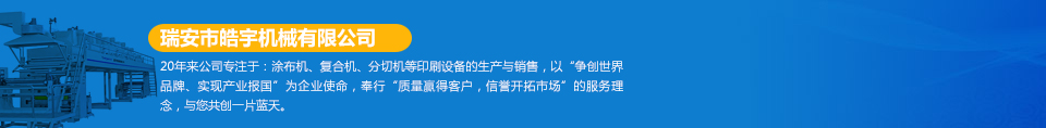 瑞安市皓宇機(jī)械有限公司是瑞安一家私營(yíng)責(zé)任有限公司,注冊(cè)資金200萬(wàn),員工40余人,是具有獨(dú)立法人地位,專業(yè)生產(chǎn)定做各種非標(biāo)準(zhǔn)涂布機(jī)、復(fù)合機(jī)、印刷機(jī)、分切機(jī)、壓膜機(jī)等機(jī)械設(shè)備的制造廠。公司的機(jī)器主要用于生產(chǎn)保護(hù)膜、膠帶、雙面膠、不干膠、相紙、油畫布、汽車防爆膜、熱轉(zhuǎn)印、燙金膜、離型膜、離型紙、軟包裝印刷、軟包裝復(fù)合、軟包裝分切等各種產(chǎn)品... [詳細(xì)]